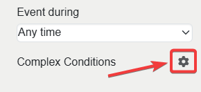 Para começar a configurar suas opções de Condições Complexas, clique no ícone de configurações ao lado de Condições Complexas no painel de filtros, ou —